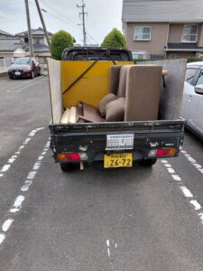 島原市城西中の丁にて二人掛けソファー、ベッドの枠の回収です。